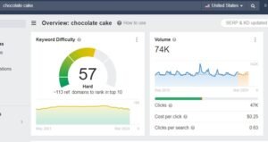 Imagine you run a bakery specializing in artisanal cakes. You might initially think targeting the keyword “chocolate cake” is a sweet idea due to its high search volume of 80,000 searches per month. However, upon further investigation, you discover it has a keyword difficulty of 70%, indicating fierce competition.