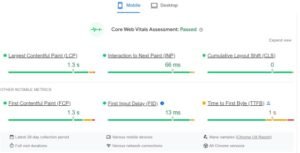 To check your page speed, use Google’s PageSpeed Insights tool. Simply enter your page’s URL and analyze the results. Pay attention to the “Core Web Vitals Assessment” for both mobile and desktop versions of your site. These key speed metrics include: